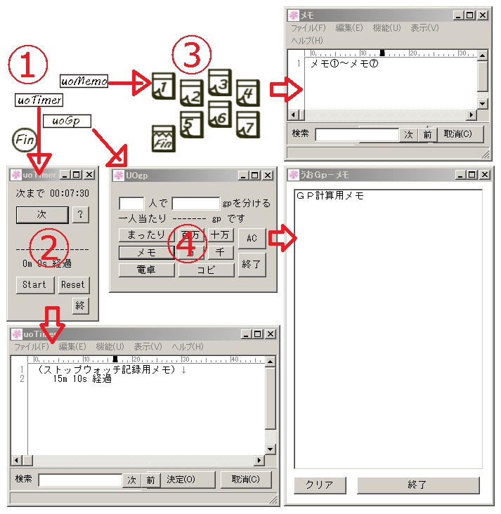 内容:UOでの生活で必須の物で、規約に反さないものを揃えました。